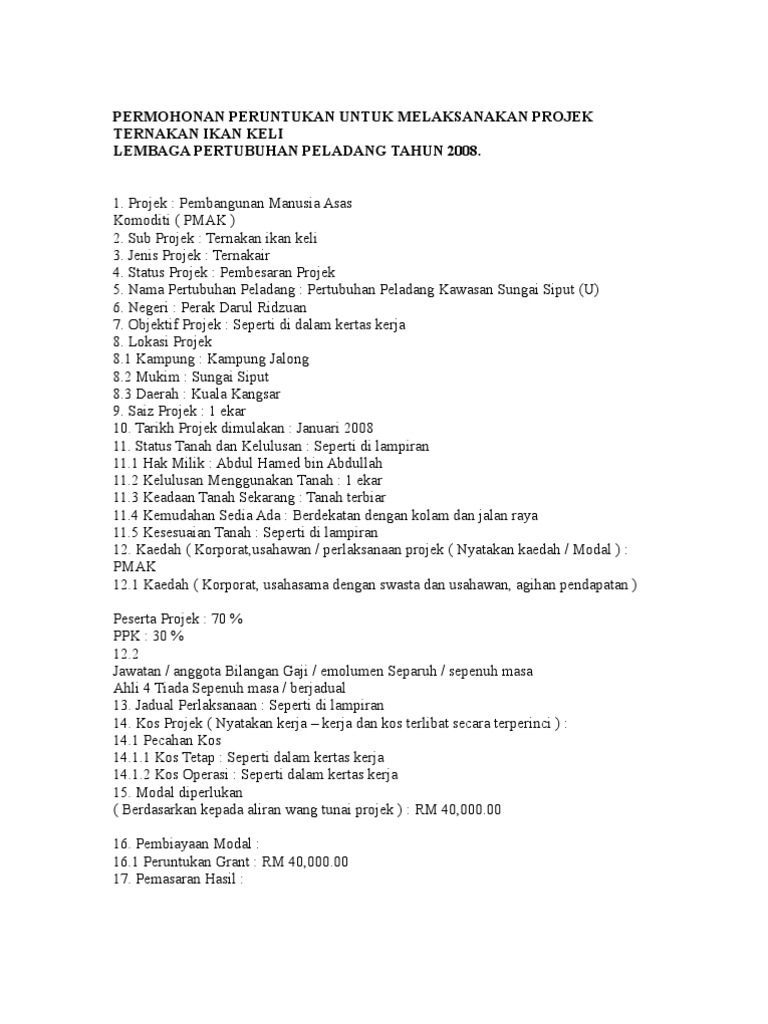 Kertas Kerja Projek Ternakan Ikan Keli Pdf